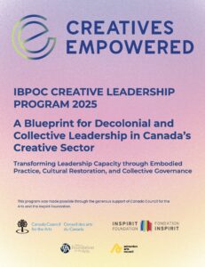 The IBPOC Creative Leadership Program provides a model for equitable sectoral transformation, affirming that IBPOC leadership is not about assimilation but about fundamentally changing how leadership, community, and cultural work are understood in Canada. This report to community also serves as a blueprint for decolonial and collective leadership for IBPOC Artists, Creatives, Content Creators, and our cultural sector at-large.